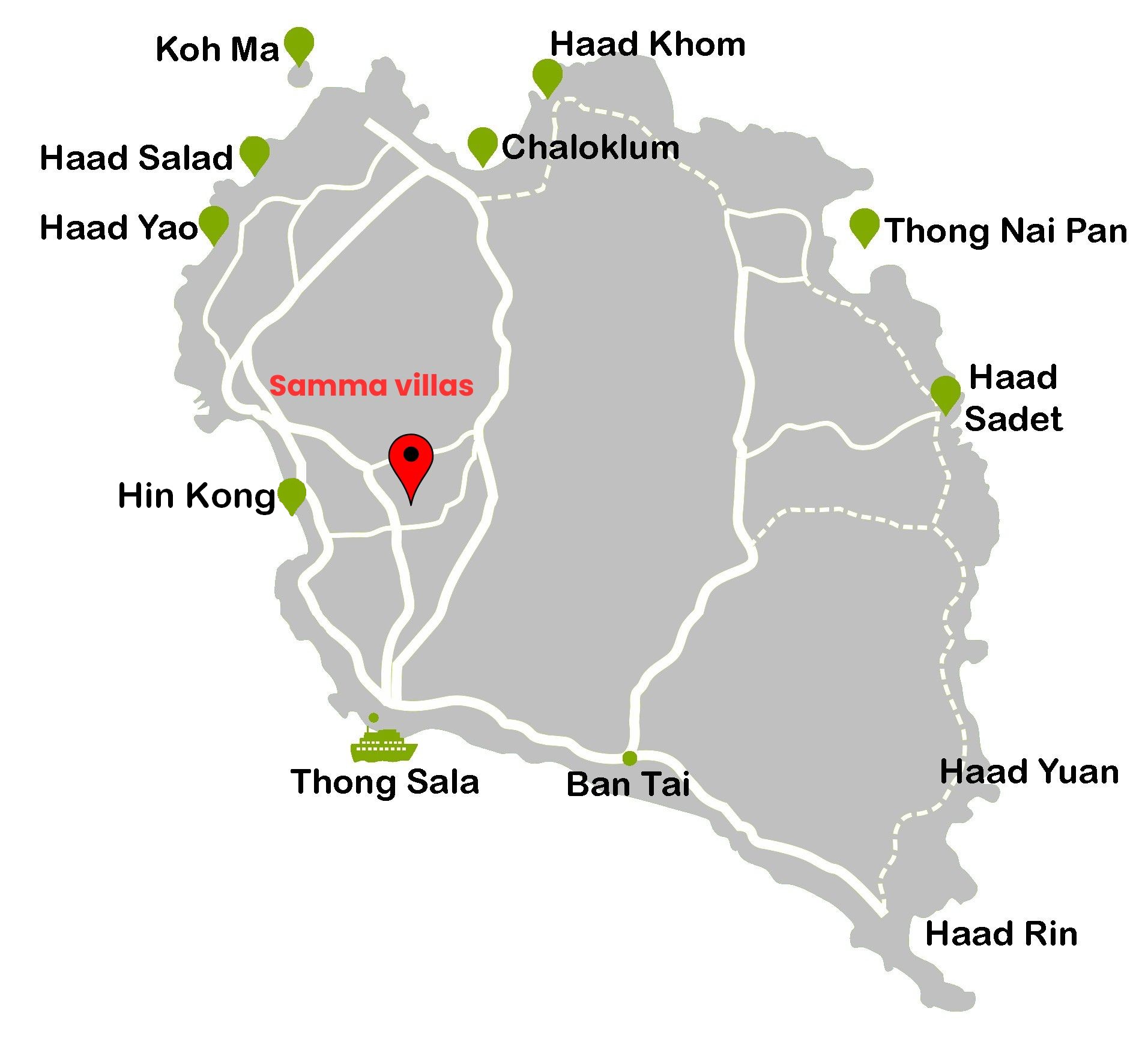 Perfectly located on the island of Koh Phangan, Samma Villas enjoys a prime position that combines serenity with convenient access to local amenities. Nestled amidst lush greenery, it offers a peaceful retreat just minutes away from pristine beaches, vibrant restaurants, and the island’s many attractions. A true sanctuary to experience the best of Koh Phangan.